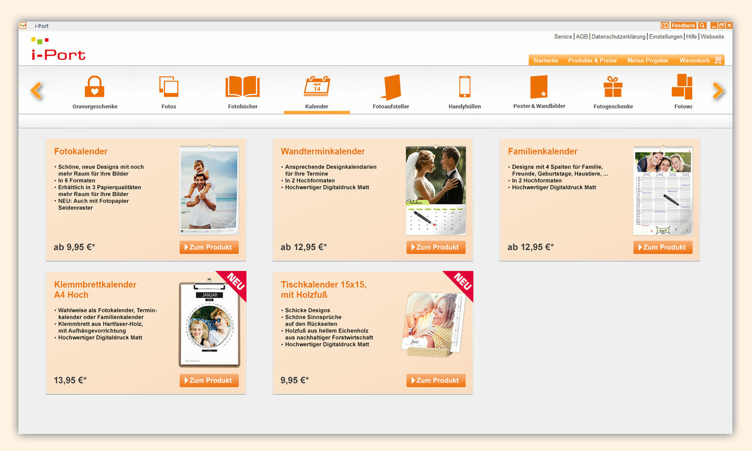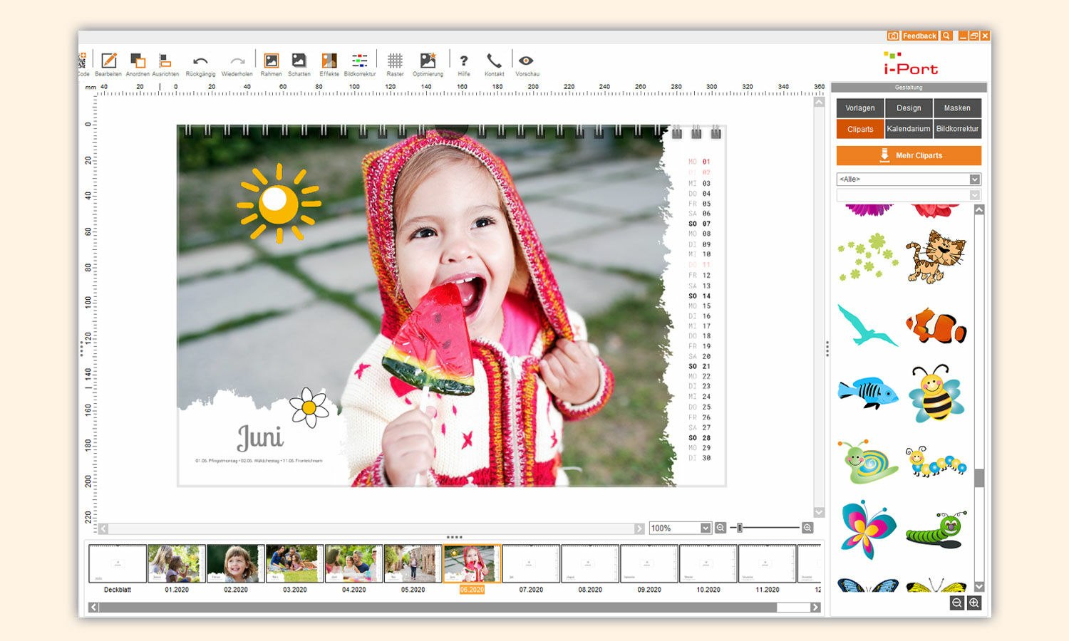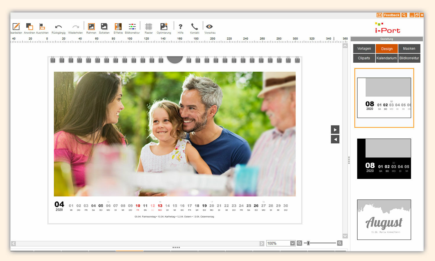 Mit der kostenlosen Bestellsoftware von i-Port gestalten Sie Ihre individuellen Kalender nach Ihren Vorstellungen.