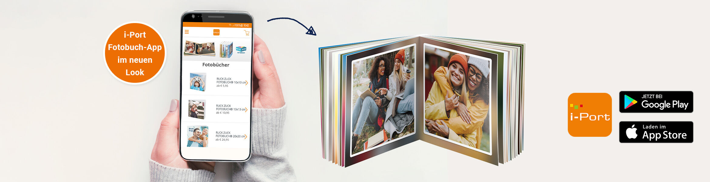 mit der „i-Port Fotobücher App" halten Sie Ihre Erinnerungen ganz einfach und in einem sympathischen Buchformat fest.